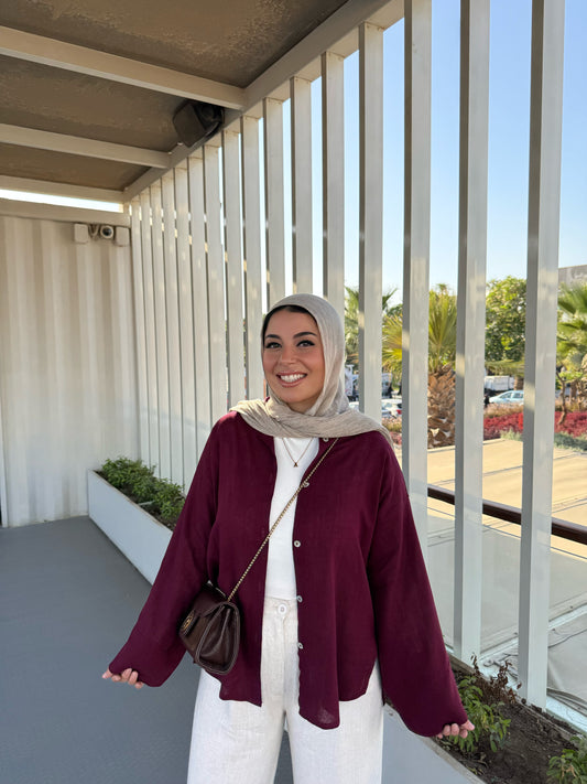 LINEN SHIRT IN BURGUNDY