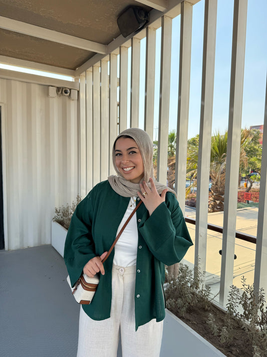 LINEN SHIRT IN EMERALD GREEN