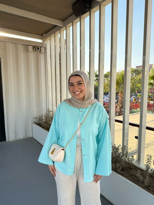 Sold outLINEN SHIRT IN AQUA